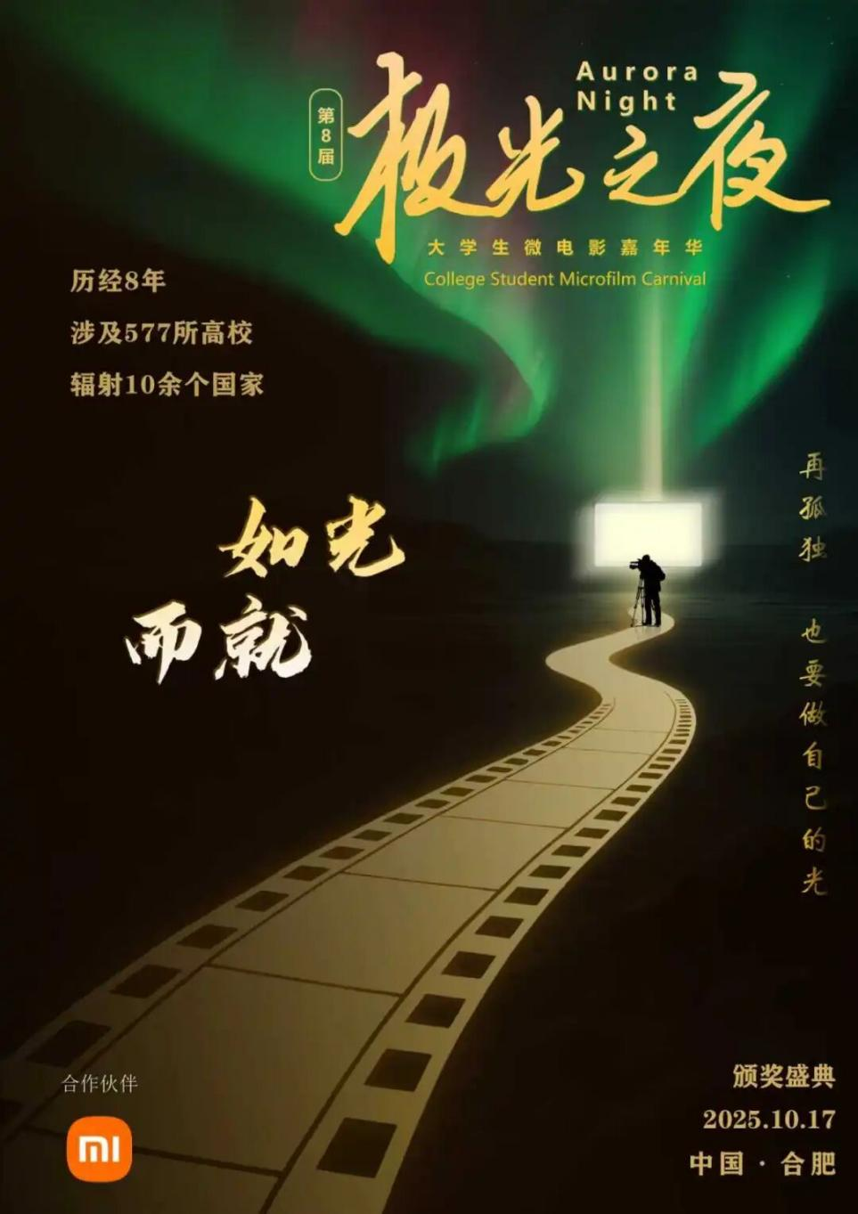 據(jù)了解,“極光之夜”由安徽省電影電視藝術家協(xié)會、安徽省電影電視評論學會、安徽省電影電視評論學會微電影專業(yè)委員會聯(lián)合主辦。經(jīng)過七年發(fā)展,該活動從合肥出發(fā),走出了一條“探索+創(chuàng)新”的成長路,影響力一年比一年廣。截至目前,第8屆微電影嘉年華活動已吸引全球近600所高校團隊參與支持,涵蓋清華大學、中國傳媒大學、北京電影學院、中央戲劇學院、廈門大學、浙江大學等550余所國內知名院校與韓國東國大學、澳大利亞悉尼大學、新加坡藝術大學丨南洋藝術學院等海外高校。本屆參賽作品題材也更為豐富多元,既涵蓋聚焦現(xiàn)實的紀實故事,也包含玩轉前沿技術的創(chuàng)新嘗試,全方位展現(xiàn)了當代大學生在影像創(chuàng)作領域的“超能力”。