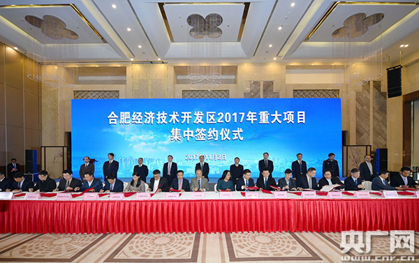 央廣網(wǎng)合肥11月2日消息(記者徐鵬 通訊員章玉龍 李長龍)11月2日上午,合肥經(jīng)開區(qū)舉行2017年重大項目集中簽約暨集中開工儀式,53個重點項目集中簽約、集中開工,涵蓋家電、汽車、電子信息、現(xiàn)代服務(wù)業(yè)等產(chǎn)業(yè),總投資697.79億元。