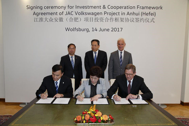 2017年6月1日,在李克強總理和德國總理默克爾的共同見證下,江淮汽車集團股份有限公司與大眾汽車集團在德國柏林正式簽署合資企業(yè)協(xié)議,雙方共同成立一家股比各占50%的合資企業(yè),進行新能源汽車的研發(fā)、生產(chǎn)和銷售。