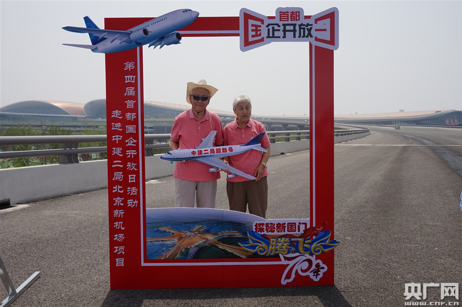 90歲高領(lǐng)的兩位老人現(xiàn)場參觀北京新機場建設(shè)項目(央廣網(wǎng)記者 陸明明 攝)