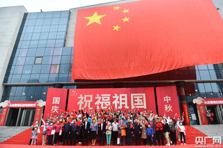 央廣網(wǎng)北京10月1日消息(記者劉天思)10月1日上午,北京市朝陽區(qū)文化館廣場(chǎng)人聲鼎沸,熱鬧非凡。廣場(chǎng)上30個(gè)大紅燈籠格外引人注意,上面分別印有“擼起袖子加油干”“人民對(duì)美好生活的向往就是我們的奮斗目標(biāo)”“堅(jiān)持人與自然和諧共生”等振奮人心的標(biāo)語。在《我愛我的祖國》的歌聲中,一面巨幅國旗從文化館樓頂緩緩鋪展下來,瞬間彩片漫天飛舞,與五星紅旗相映成輝,伴隨著歌聲、掌聲、歡呼聲,朝陽區(qū)新時(shí)代文明實(shí)踐中心國慶專題活動(dòng)正式開始。