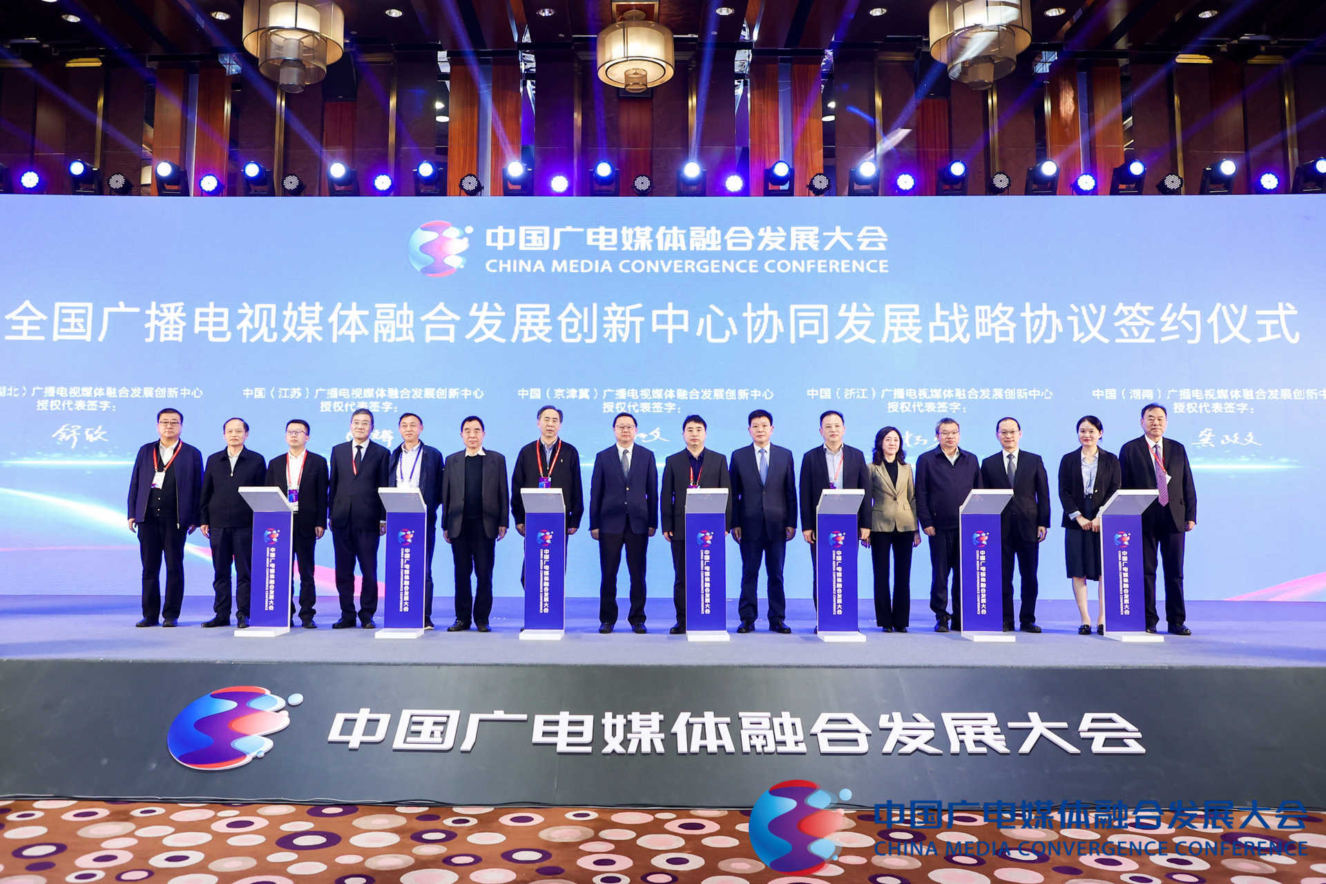 10月13日上午,第二屆中國廣電媒體融合發(fā)展大會的啟動式暨高端峰會舉行。啟動式上,京津冀、江蘇、浙江、湖北、湖南、陜西、蘇州等七家全國廣播電視媒體融合發(fā)展創(chuàng)新中心共同簽署《協(xié)同推進媒體融合創(chuàng)新發(fā)展戰(zhàn)略合作協(xié)議》。