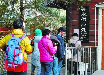 嚴(yán)寒季節(jié),紫竹院公園以人為本,為前來(lái)游園的游客免費(fèi)提供開(kāi)水,讓游客在寒冷的天氣里,感受到如春的暖意。本報(bào)特約攝影 李文明