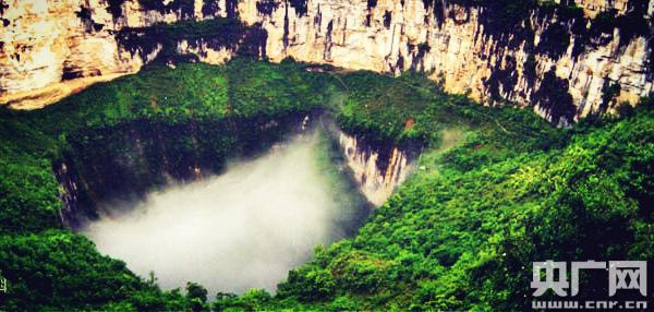 央廣網(wǎng)奉節(jié)10月9日消息 天坑地縫旅游風(fēng)景區(qū)位于奉節(jié)縣荊竹鄉(xiāng)小寨村,是世界上深度和容積最大的巖溶漏斗。天坑口四面絕壁,如斧劈刀削,宏偉壯觀?又杏袩o數(shù)幽深莫測的洞穴和一條洶涌澎湃的暗河。中西探險(xiǎn)家曾多次深入天坑探險(xiǎn), 探明天坑中暗河經(jīng)出水洞流向迷宮河, 推測天坑中暗河來自神秘的大地縫。