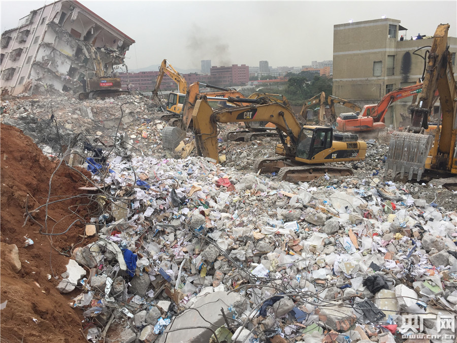 央廣網(wǎng)深圳12月22日消息(記者管昕)這里是今晨五點五十五分發(fā)現(xiàn)首具遺體的區(qū)域,位于事發(fā)現(xiàn)場的西北側(cè)。佛山消防支隊發(fā)現(xiàn)這具男性遺體時,尸體已經(jīng)擠壓變形。目前,他們?nèi)栽趯υ搮^(qū)域邊挖掘邊探測,部分區(qū)域已開始建筑垃圾的切割清理。 深圳市光明新區(qū)滑坡災(zāi)害事故已過去近兩天時間,事故救援指揮部最新消息稱,今日(22)清晨6時許,現(xiàn)場挖出第一具遇難者遺體。