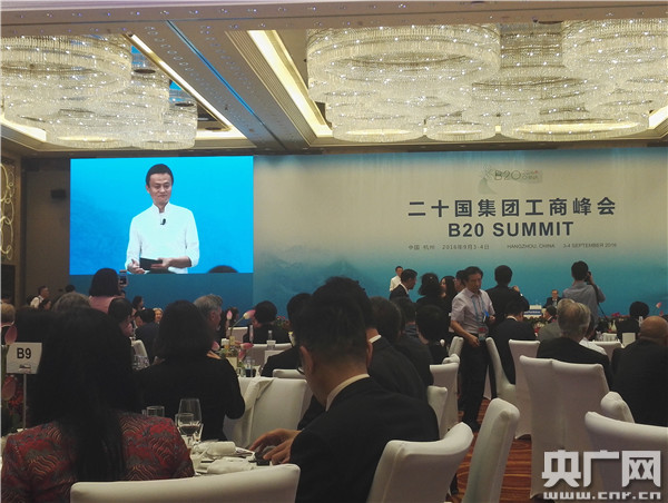 馬云在B20為中外工商界“大腕”們舉行的晚宴上講話