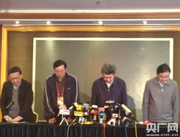 深圳市副市長劉慶生等在發(fā)布會現場為罹難群眾鞠躬默哀