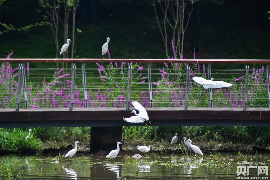 苦竹溪生態(tài)變美引來大量白鷺(央廣網(wǎng)發(fā) 郭旭 攝)