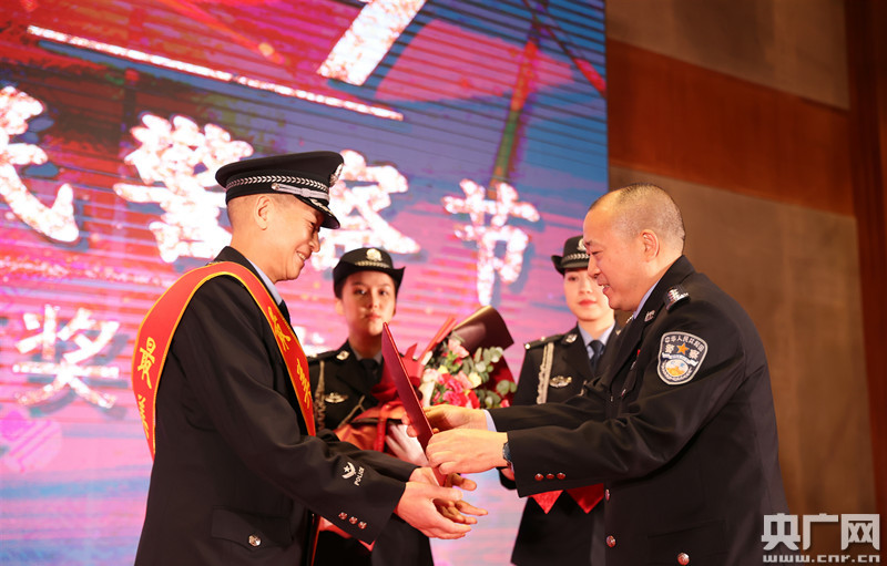 頒獎領導為最美老警頒獎(央廣網發(fā) 通訊員供圖)