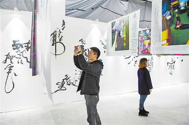 十一月十二日,巴南區(qū)華熙LIVE,龍璽華文創(chuàng)意大展上,嘉賓用手機拍攝喜愛的作品。記者 謝智強 攝