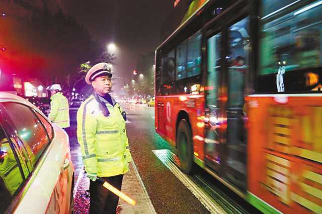姜瑞華正在疏導(dǎo)交通。(重慶市公安局供圖)