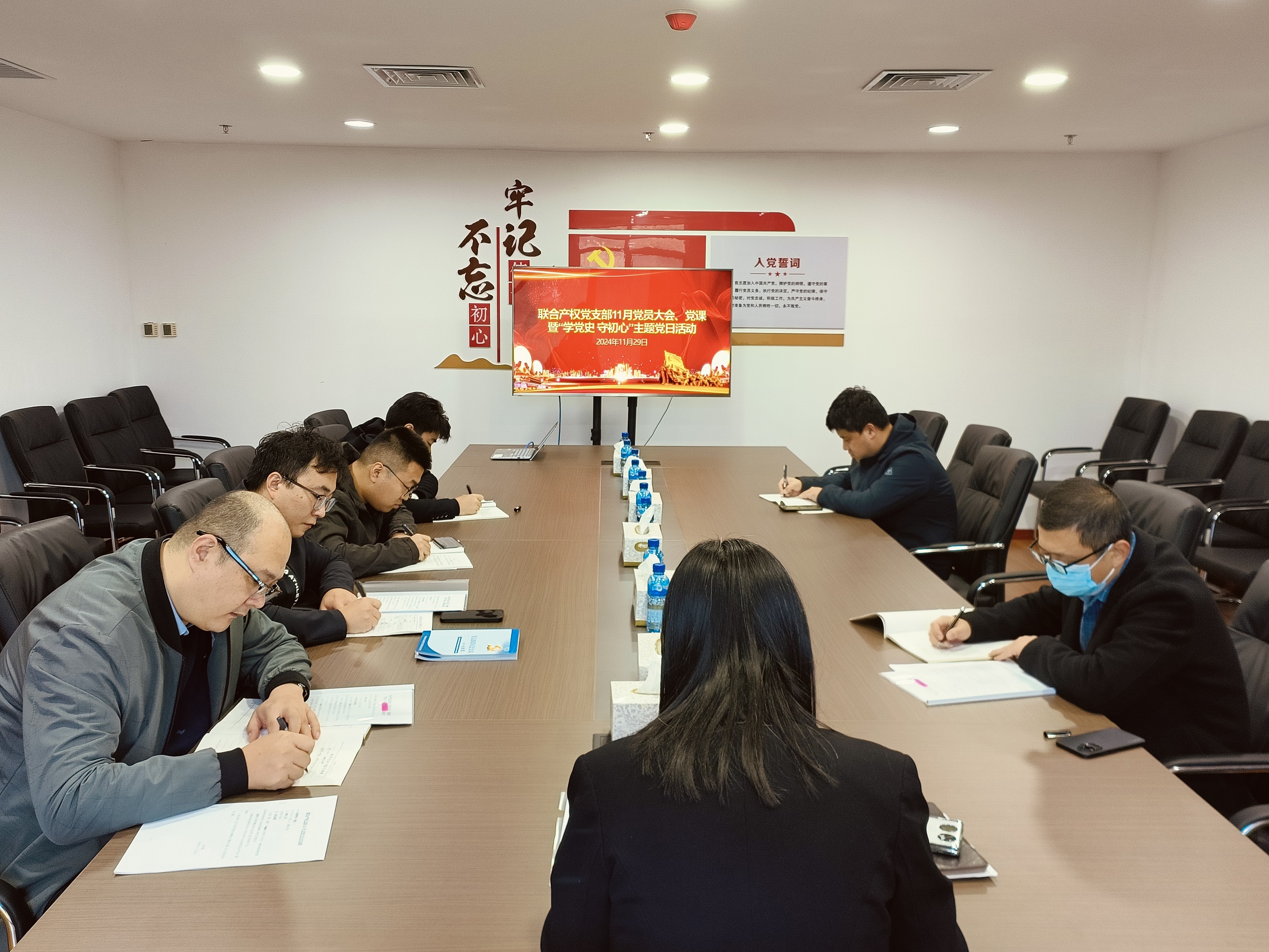11月29日聯(lián)合產(chǎn)權(quán)黨支部召開(kāi)11月黨員大會(huì)、黨課暨“學(xué)黨史 守初心”主題黨日活動(dòng),黨支部副書(shū)記主持,支部黨員參加會(huì)議。
