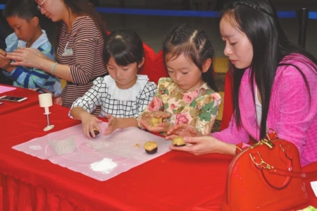 小朋友在川博做月餅。