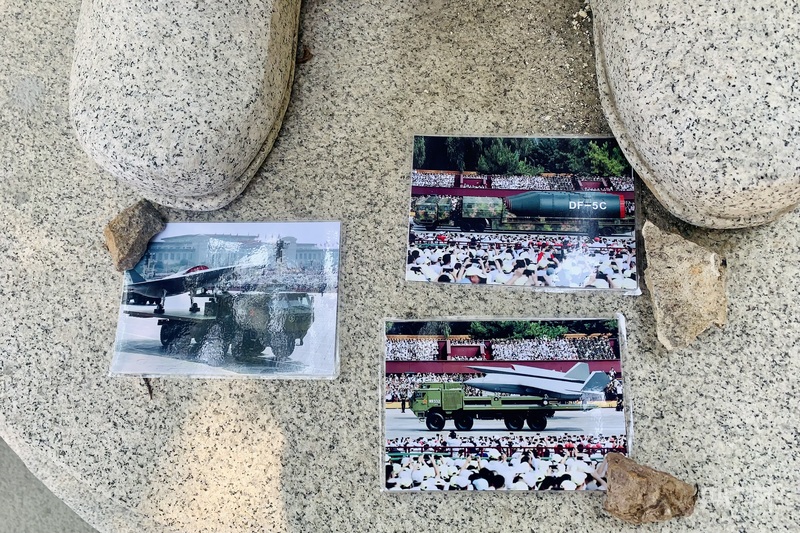 記者注意到,吳石將軍雕像腳下擺放著3張今年九三閱兵的裝備照片,其中一張是壓軸亮相的東風(fēng)-5C洲際導(dǎo)彈,仿佛在向英雄訴說(shuō)今日的國(guó)泰民安。一位不愿透露姓名的老奶奶邊擦拭雕像上的灰塵邊喃喃道:“現(xiàn)在生活好了,把更多曝光留給英雄,讓更多人知道他們!彼貞浧饎(dòng)蕩歲月滿是感慨,“如今日子好了,英雄們也該放心了!