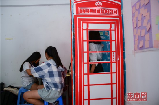 •   新生在“電話亭”中留下自己的愿望。( 詹洋洋攝)   通話四年后的自己 保存“最初心”   “四年后的我,你好呀,希望這四年你可以做許多想做的事。”2017級英語專業(yè)的謝雅婷舉著電話筒,緩緩說出這份情緒。9月16日,在外語系迎新點的一座紅色電話亭內(nèi),2017級的新生們拿起電話筒,留下此刻對新鮮校園的寄語,為初入大學(xué)的心情保存一份底稿。   足足三分鐘,謝雅婷才把心里的話說完,她吐露出的心情和寄語都被話筒內(nèi)安置的錄音筆保存下來。電話亭的墻上貼滿了寫著與大學(xué)相關(guān)話題的便簽條,有的新生放下電話后,拿起桌上的便簽條,寫下答案的同時也寫下自己感興趣的話題,讓下一位來到電話亭的新生來回答。