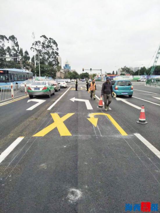 看到這個標記千萬不要掉頭 廈門首次啟用禁止掉頭標記