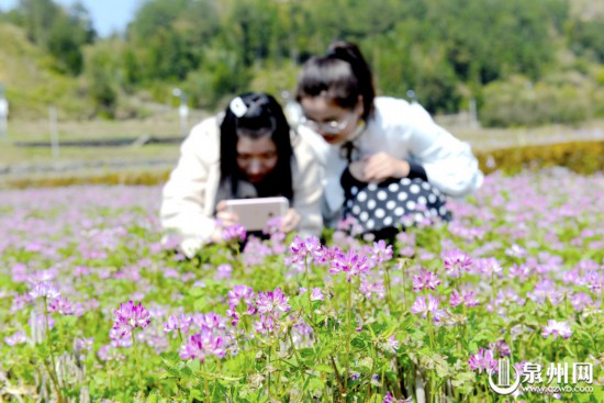 近日,在德化縣美湖鎮(zhèn)小湖村的田間地頭,百畝紫云英悄然綻放,一株株紫云英,綠色、紫色、白色相間,隨風搖曳,絢爛奪目,美不勝收,吸引了眾多游客觀賞拍照。“這百畝紫云英盛開,猶如漫天紫霞飄落人間,既點綴了美麗的鄉(xiāng)村,而且能培肥地力,改善土地耕作性能!钡禄h美湖鎮(zhèn)政府的工作人員蘭興攀表示,近年來,美湖鎮(zhèn)培育種植百畝紫云英種植觀光基地,積極融入全縣發(fā)展全域旅游戰(zhàn)略,提振鄉(xiāng)村振興,致力將千年樟樹王→金書樓→美湖公社→厚房祖厝群→大龍湖漂流碼頭等景點串連成線,打造生態(tài)休閑旅游精品線。(通訊員 吳有森 記者 陳明華/攝影報道)