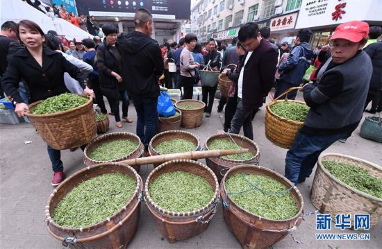 3月21日,茶農(nóng)在福鼎市點頭鎮(zhèn)的福鼎白茶交易市場售賣茶青。 福建省福鼎市白茶種植歷史悠久。近年來福鼎市把茶產(chǎn)業(yè)作為精準脫貧和鄉(xiāng)村振興的戰(zhàn)略性產(chǎn)業(yè)來發(fā)展,通過多項舉措推動茶產(chǎn)業(yè)轉型升級,2018年全市茶園面積達20.3萬畝,茶葉總產(chǎn)量2.7萬噸,涉茶總產(chǎn)值達56.88億元,有效帶動當?shù)剜l(xiāng)村產(chǎn)業(yè)振興和農(nóng)民增收致富。 新華社記者林善傳攝