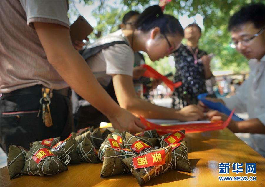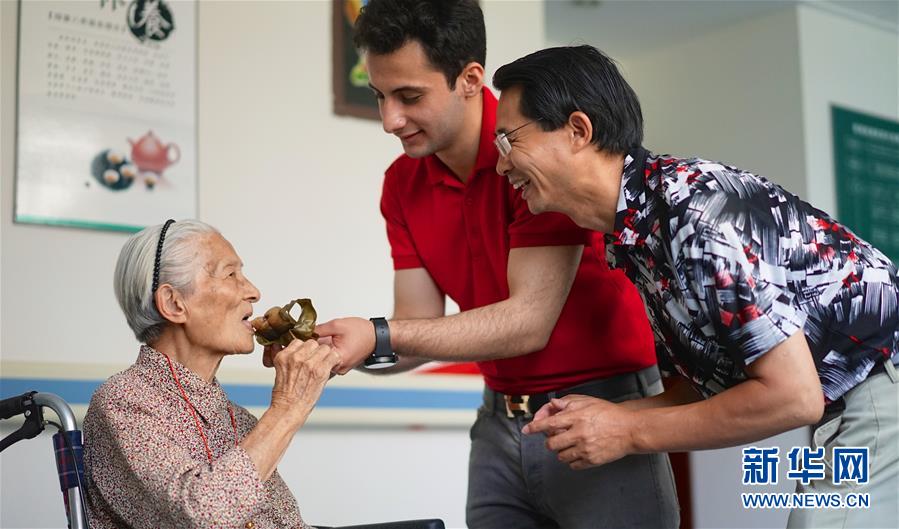 5月28日,在江西省南昌市青山湖區(qū)社會福利中心,兩名志愿者給生活在福利中心的老人送去包好的粽子。 當日是端午小長假的第一天,全國各地舉行豐富多彩的活動,迎接端午節(jié)到來。 華社記者 胡晨歡 攝 -