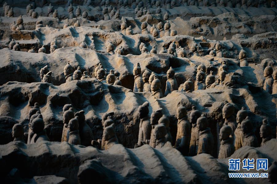 位于陜西省西安市臨潼區(qū)的秦兵馬俑坑(2016年10月27日攝)。秦兵馬俑坑發(fā)現(xiàn)于1974年,被譽為“世界第八大奇跡”“二十世紀考古史上的偉大發(fā)現(xiàn)之一”。12月6日,我國首條穿越秦嶺的高鐵——西(安)成(都)高鐵全線即將正式開通運營。這條川陜?nèi)嗣衿谂我丫玫目瓦\專線,不僅串聯(lián)起沿線地區(qū)的經(jīng)濟發(fā)展和社會進步,也打通了兩省豐富的旅游資源。從秦腔到川劇,從兵馬俑到武侯祠,從泡饃涼皮到火鍋抄手,這些都隨著西成高鐵的開通變得更為“觸手可及”。跟著高鐵“逛吃逛吃”,將成為廣大游客體驗川陜兩地的新選擇。新華社記者 李一博 攝 位于陜西省西安市臨潼區(qū)的秦兵馬俑坑(2016年10月27日攝)。秦兵馬俑坑發(fā)現(xiàn)于1974年,被譽為“世界第八大奇跡”“二十世紀考古史上的偉大發(fā)現(xiàn)之一”。12月6日,我國首條穿越秦嶺的高鐵——西(安)成(都)高鐵全線即將正式開通運營。這條川陜?nèi)嗣衿谂我丫玫目瓦\專線,不僅串聯(lián)起沿線地區(qū)的經(jīng)濟發(fā)展和社會進步,也打通了兩省豐富的旅游資源。從秦腔到川劇,從兵馬俑到武侯祠,從泡饃涼皮到火鍋抄手,這些都隨著西成高鐵的開通變得更為“觸手可及”。跟著高鐵“逛吃逛吃”,將成為廣大游客體驗川陜兩地的新選擇。新華社記者 李一博 攝