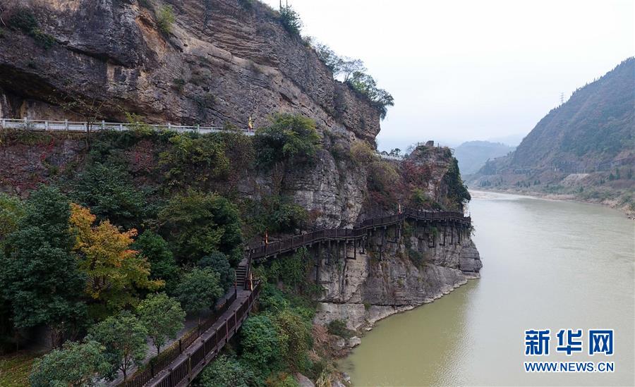 這是11月25日拍攝的四川省廣元市明月峽棧道。明月峽棧道是劍門蜀道的重要組成部分,集鳥道、棧道、纖夫道、水道、公路、鐵路六道于一峽,可謂是天然的中國交通“博物館”。12月6日,我國首條穿越秦嶺的高鐵——西(安)成(都)高鐵全線即將正式開通運營。這條川陜?nèi)嗣衿谂我丫玫目瓦\專線,不僅串聯(lián)起沿線地區(qū)的經(jīng)濟發(fā)展和社會進步,也打通了兩省豐富的旅游資源。從秦腔到川劇,從兵馬俑到武侯祠,從泡饃涼皮到火鍋抄手,這些都隨著西成高鐵的開通變得更為“觸手可及”。跟著高鐵“逛吃逛吃”,將成為廣大游客體驗川陜兩地的新選擇。新華社記者 薛玉斌 攝 這是11月25日拍攝的四川省廣元市明月峽棧道。明月峽棧道是劍門蜀道的重要組成部分,集鳥道、棧道、纖夫道、水道、公路、鐵路六道于一峽,可謂是天然的中國交通“博物館”。12月6日,我國首條穿越秦嶺的高鐵——西(安)成(都)高鐵全線即將正式開通運營。這條川陜?nèi)嗣衿谂我丫玫目瓦\專線,不僅串聯(lián)起沿線地區(qū)的經(jīng)濟發(fā)展和社會進步,也打通了兩省豐富的旅游資源。從秦腔到川劇,從兵馬俑到武侯祠,從泡饃涼皮到火鍋抄手,這些都隨著西成高鐵的開通變得更為“觸手可及”。跟著高鐵“逛吃逛吃”,將成為廣大游客體驗川陜兩地的新選擇。新華社記者 薛玉斌 攝