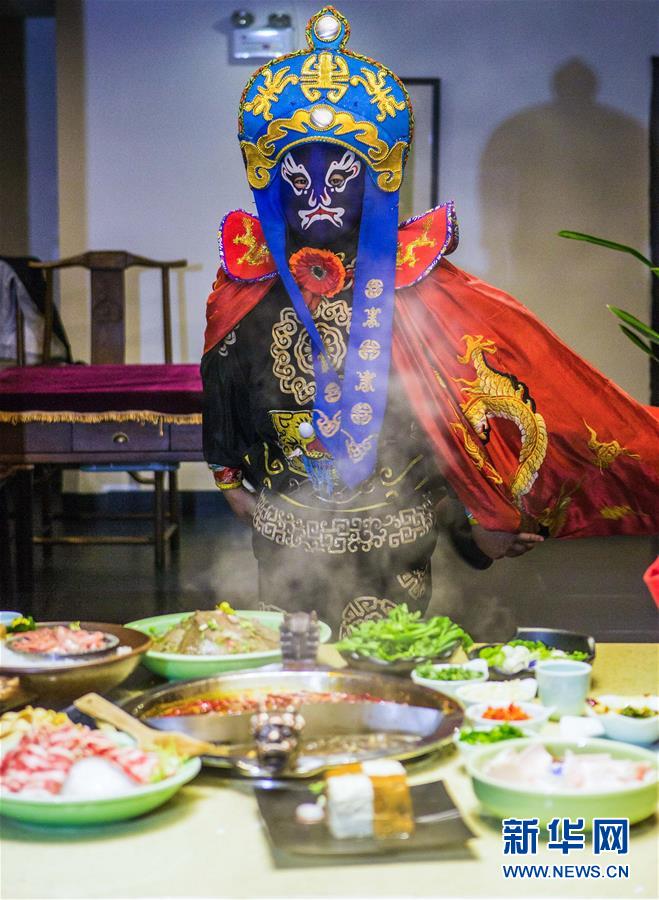 11月24日,在四川省成都市高新區(qū)一家火鍋店,一名演員在餐前表演變臉;疱伜痛▌∽兡樁际浅啥嫉摹俺鞘忻薄12月6日,我國首條穿越秦嶺的高鐵——西(安)成(都)高鐵全線即將正式開通運營。這條川陜?nèi)嗣衿谂我丫玫目瓦\專線,不僅串聯(lián)起沿線地區(qū)的經(jīng)濟發(fā)展和社會進步,也打通了兩省豐富的旅游資源。從秦腔到川劇,從兵馬俑到武侯祠,從泡饃涼皮到火鍋抄手,這些都隨著西成高鐵的開通變得更為“觸手可及”。跟著高鐵“逛吃逛吃”,將成為廣大游客體驗川陜兩地的新選擇。新華社記者 薛玉斌 攝 11月24日,在四川省成都市高新區(qū)一家火鍋店,一名演員在餐前表演變臉;疱伜痛▌∽兡樁际浅啥嫉摹俺鞘忻薄12月6日,我國首條穿越秦嶺的高鐵——西(安)成(都)高鐵全線即將正式開通運營。這條川陜?nèi)嗣衿谂我丫玫目瓦\專線,不僅串聯(lián)起沿線地區(qū)的經(jīng)濟發(fā)展和社會進步,也打通了兩省豐富的旅游資源。從秦腔到川劇,從兵馬俑到武侯祠,從泡饃涼皮到火鍋抄手,這些都隨著西成高鐵的開通變得更為“觸手可及”。跟著高鐵“逛吃逛吃”,將成為廣大游客體驗川陜兩地的新選擇。新華社記者 薛玉斌 攝