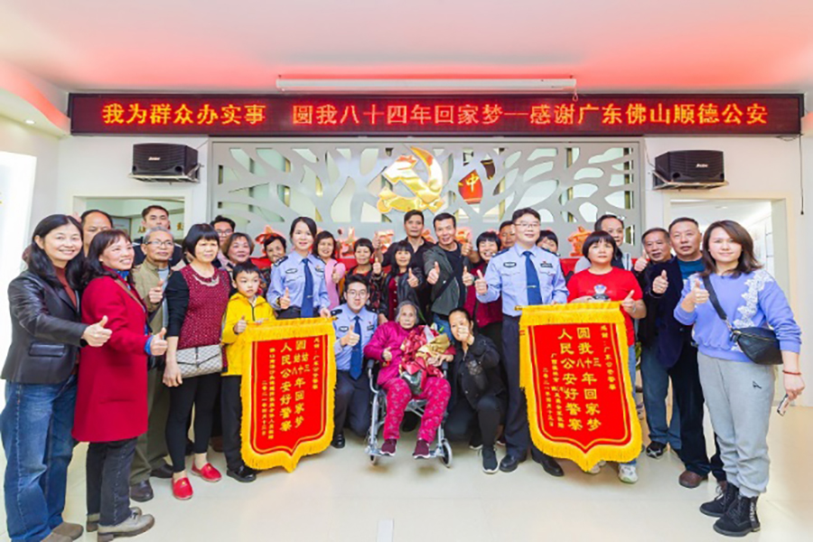 此后,包括馬宏聲在內(nèi)的佛山順德公安民警一直關(guān)注這個(gè)特殊的個(gè)案,并通過(guò)志愿者與馮鳳英和家人保持聯(lián)系,與社會(huì)多方協(xié)作,設(shè)法為這位八旬老人尋親圓夢(mèng)。