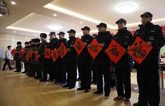 書畫藝術(shù)家為保安贈(zèng)送“福”字