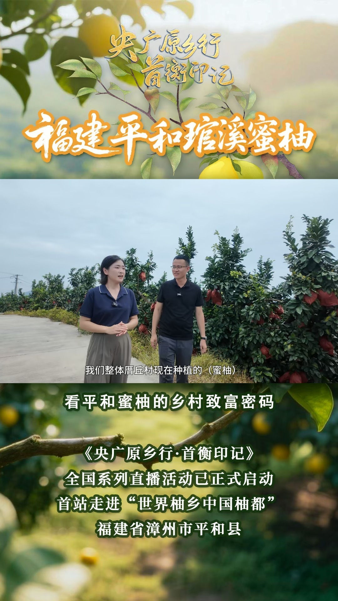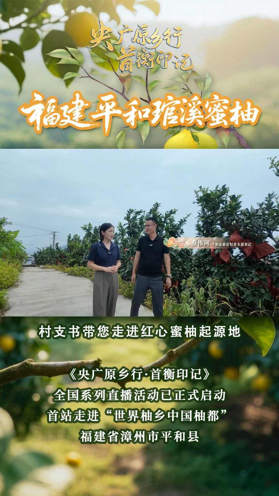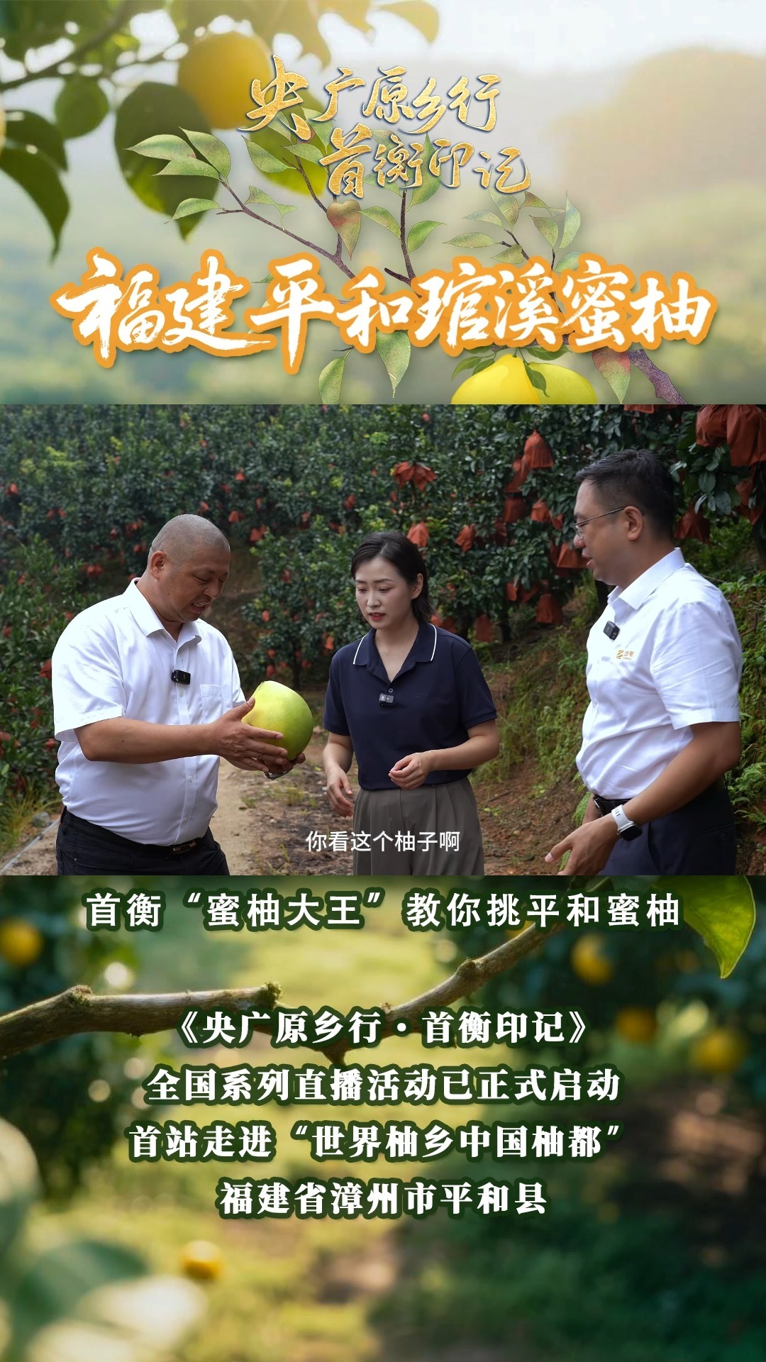 《央廣原鄉(xiāng)行·首衡印記》全國(guó)系列直播活動(dòng)已正式啟動(dòng),首站走進(jìn)“世界柚鄉(xiāng) 中國(guó)柚都”福建省漳州市平和縣。