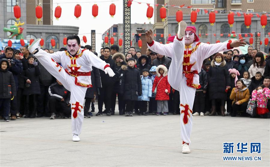 2月10日,民間藝人在河北滄州市新華區(qū)舉辦的“民俗文化節(jié)”活動(dòng)上進(jìn)行即興武術(shù)表演。 當(dāng)日是春節(jié)長假最后一天,各地舉行的假日活動(dòng)豐富多彩。