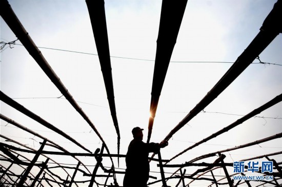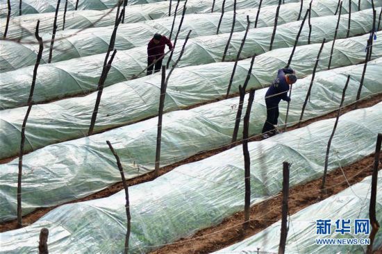 2月25日,山東省淄博市沂源縣歷山街道彩板峪村的農(nóng)民在搭建蔬菜大棚。 春日時節(jié),人們忙于生產(chǎn)勞動,為新一年的豐收和美好生活打下基礎。 新華社發(fā)(趙東山 攝)