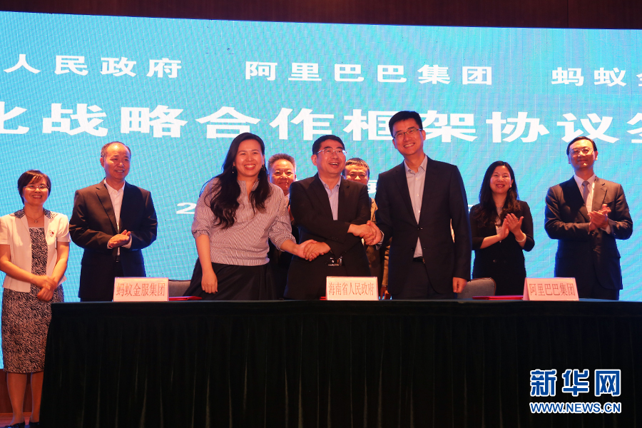 新華網(wǎng)海口4月27日電(張瑜 王雯君)4月27日,海南省人民政府、阿里巴巴集團(tuán)、螞蟻金服集團(tuán)全面深化戰(zhàn)略合作框架協(xié)議簽署儀式在海口舉行。雙方將圍繞經(jīng)濟(jì)發(fā)展、社會(huì)治理、民生服務(wù)三大領(lǐng)域深化合作,尤其是在數(shù)字經(jīng)濟(jì)、智慧服務(wù)業(yè)、信息智能島、電子商務(wù)等多方面開展重點(diǎn)合作。