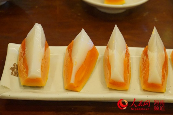 活動現(xiàn)場,騎樓小吃街的工作人員還將椰子果凍、椰子芒果糕、椰子飯、菠蘿飯 、木瓜雪杏等5款參加“一夜市一名品”爆款美食評選活動的美食一一擺出,由試吃團試吃并現(xiàn)場打分。