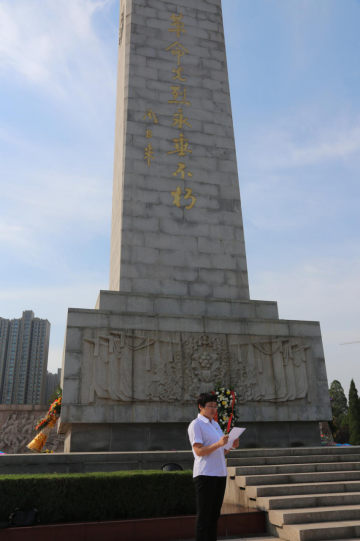 隨著集中學(xué)習(xí)的結(jié)束,鄭州新區(qū)支行黨支部來到鄭州烈士陵園,瞻仰革命烈士紀(jì)念碑,緬懷為革命勝利獻(xiàn)出寶貴生命的英雄兒女。在紀(jì)念碑前,鄭州新區(qū)支行黨支部向革命先烈敬獻(xiàn)花籃并三鞠躬。黨支部委員、副行長王健同志代表黨支部在紀(jì)念碑前致詞,緬懷革命先烈,告慰革命英靈。告誡全體黨員不能忘紅色政權(quán)是怎么來的、新中國是怎么來的、今天的幸福生活是怎么來的,要高舉中國特色社會主義偉大旗幟,堅定走中國特色社會主義道路,把先輩們開創(chuàng)的事業(yè)不斷推向前進(jìn)。