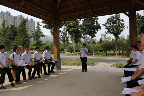 參觀結(jié)束后,鄭州新區(qū)支行黨支部來到中原英烈館西側(cè)的廊亭下,召開了“緬懷革命先烈、提振攻堅精神”主題黨日專題座談會。由黨員代表結(jié)合主題教育開展以來的學(xué)習(xí)情況,及主題黨日活動,談?wù)勛约旱男牡皿w會。同志們都認(rèn)為主題教育開展以來,對自身的學(xué)習(xí)起到了很好的促進(jìn)推動作用,尤其是主題黨日活動,通過緬懷革命先烈的英雄事跡,滌除污垢,純化自己的初心,強(qiáng)化自己的使命擔(dān)當(dāng)。