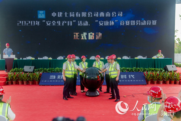 “安康杯”競(jìng)賽暨勞動(dòng)競(jìng)賽啟動(dòng)儀式現(xiàn)場(chǎng)。中建七局西南公司供圖