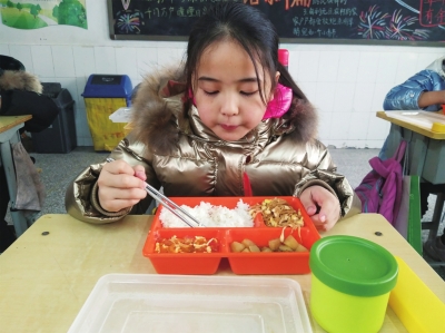 “今天是臘八,我竟然在學(xué)校喝到了臘八粥,飯菜很可口,我吃得飽飽的!”三(一)班的陳富豪飯后說。