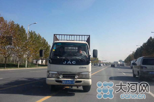 貨車(chē)隨意調(diào)頭,其實(shí)按照規(guī)定,鄭開(kāi)大道不許貨車(chē)通行!(記者2013年11月25日拍攝)