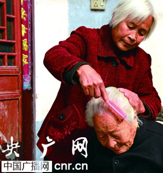 由于家里沒有能掙錢的人,唯一的收入就是種地。她留下生活必需的糧食,把余糧賣掉換錢給婆婆看病。即使這樣,也遠遠解脫不了生活中的困境。為此,趙枝妮開始到村附近的工廠打零工。年逾六旬的趙枝妮每天一路小跑,奔波在家、田地、路上和工廠里。地里的農(nóng)活、一日三餐、料理家務(wù)、照顧婆婆……生活的艱辛壓得趙枝妮喘不過氣來,但她從沒有說過一聲苦和累。因常年高負荷勞累,腰椎盤突出、高血壓、肩周炎等“毛病”都找上了趙枝妮,她曾多次昏倒在田地里、爐灶前。但17年過去了,97歲的婆婆在趙枝妮的照顧下,依舊頭腦清醒,眼不花,耳不聾。趙枝妮的親娘也已經(jīng)90多歲,身體不好,她只能帶著深深的愧疚,趁中午在村里打工的兒媳回家吃飯時,替她照看婆婆一會,自己急匆匆的趕回娘家去探望老母親。母親體諒枝妮的困難,每次都攆她:“我沒事,你快回吧,你婆婆跟前離不了人。”