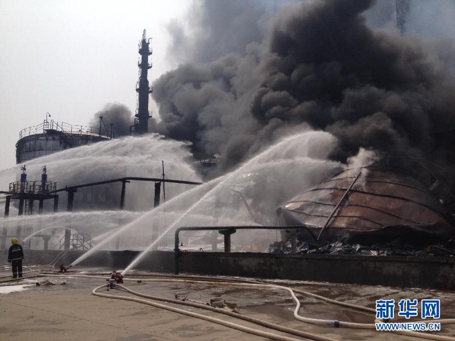 6月9日,消防官兵在南京市六合區(qū)揚子公司煉油廠爆炸現(xiàn)場滅火(手機拍攝)
