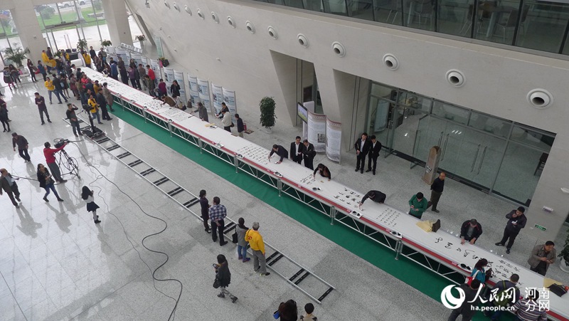 央廣網(wǎng)河南分網(wǎng)消息 據(jù)人民網(wǎng)報道:昨日上午10點,由中國傳統(tǒng)文化促進會主辦的南水北調(diào)“書行天下,夢圓中華”千米書法長卷千里行大型公益文化交流活動抵達鄭州,鄭州是社會各界名人和書法家80余人在鄭州段80米長卷前按照名簽依次排開、揮筆疾書,抒發(fā)對南水北調(diào)工程建設、沿途水資源保護及鄭州人民為工程所做貢獻。
