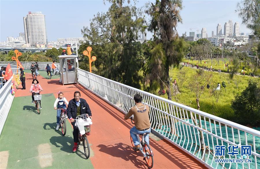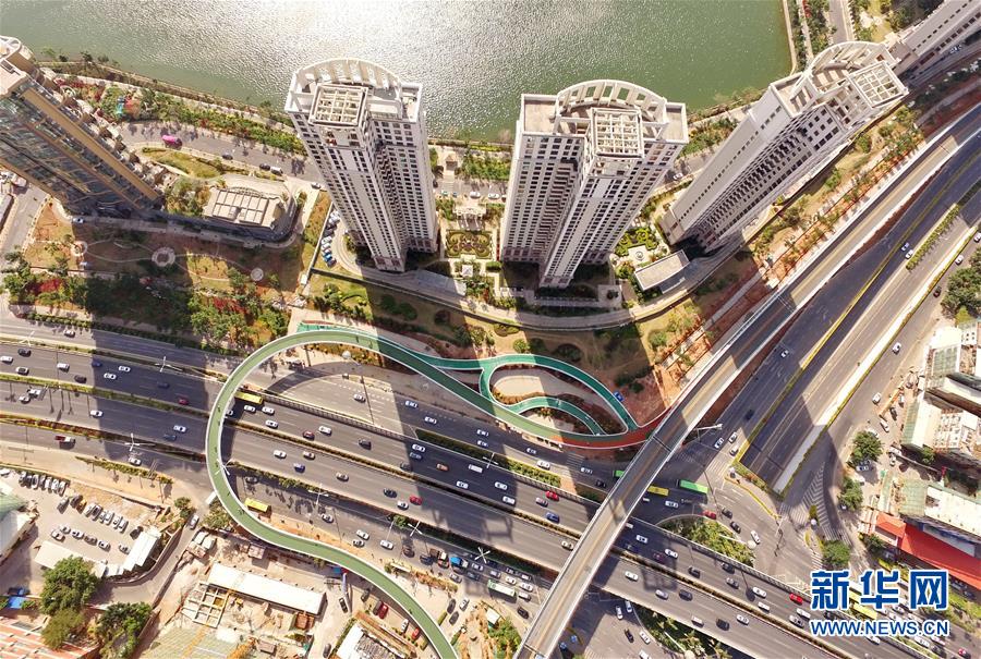 這是廈門市湖里區(qū)云頂中路和仙岳路交叉口的空中自行車道(2月9日攝)。1月26日,全國首條空中自行車道——福建廈門云頂路自行車快速道示范段試運營。這條全程高架的空中自行車道全長7.6公里,試運營以來吸引眾多市民前來騎行體驗,感受“空中騎行”的獨特魅力。 新華社記者 林善傳 攝 圖片來源:新華網(wǎng) -