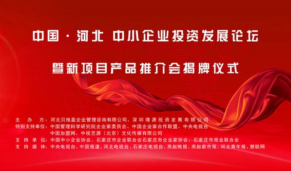 央廣網(wǎng)河南分網(wǎng)消息 據(jù)中國(guó)財(cái)經(jīng)時(shí)報(bào)網(wǎng)報(bào)道:2014年5月25日,由河北貝格盈企業(yè)管理咨詢有限公司與深圳璟源投資發(fā)展有限公司聯(lián)合主辦的“中國(guó)·河北中小企業(yè)投資發(fā)展論壇暨新項(xiàng)目產(chǎn)品推介會(huì)揭牌儀式”在省會(huì)石家莊萬象天成假日酒店成功舉行,活動(dòng)圍繞“新模式、新工藝、新技術(shù)”主題。旨在結(jié)合中小企業(yè)發(fā)展導(dǎo)向和解決中小企業(yè)實(shí)際需要,切實(shí)擴(kuò)大中小企業(yè)利用資本的規(guī)模,拓寬企業(yè)發(fā)展渠道;各界人士齊聚一堂,各抒己見,為中小企業(yè)發(fā)展諫言獻(xiàn)策。