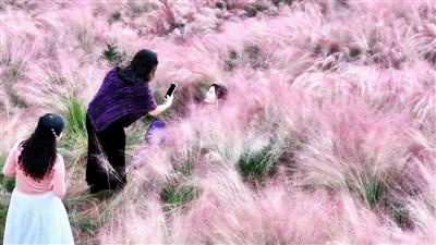 近日,鄖西縣天河口濕地公園的粉黛亂子草正處于盛花期,游客在花海中感受秋日浪漫。