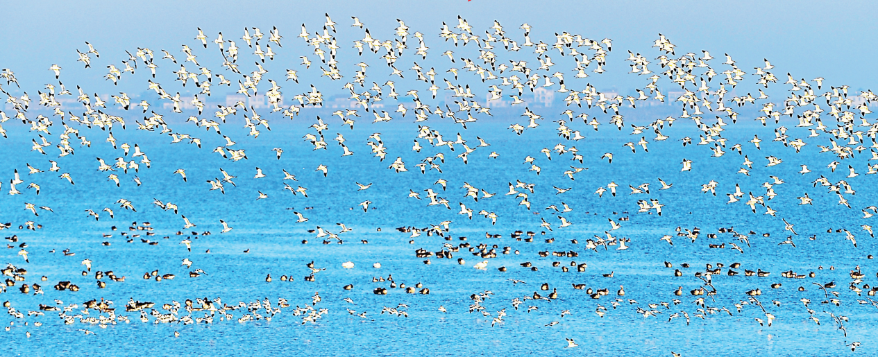 在武漢沉湖濕地自然保護(hù)區(qū)萬(wàn)鳥翱翔,場(chǎng)面壯觀。長(zhǎng)江日?qǐng)?bào)記者史偉 攝