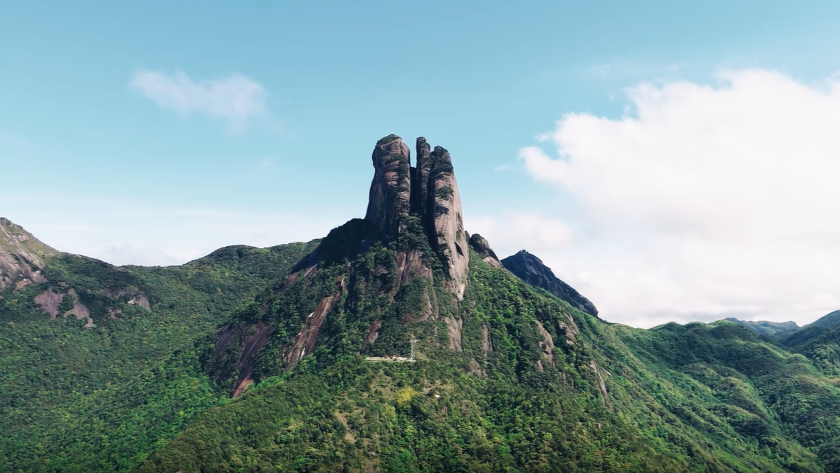 三塊如巨筍破土的花崗巖,平日云霧遮面,撐起湘江的源頭。