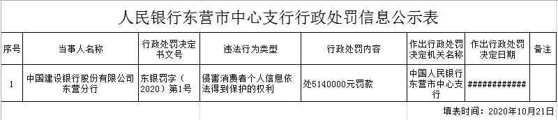 而根據(jù)央行東營(yíng)市中心支行行政處罰信息公示表,建設(shè)銀行東營(yíng)分行被監(jiān)管部門處以罰款514萬(wàn)元。