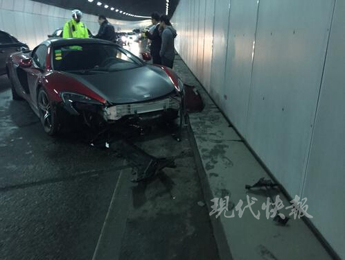 關(guān)鍵詞:南京;豪車(chē);事故;邁凱倫;跑車(chē);豪車(chē);事故發(fā)生;青年男子;隧道;副駕駛;打滑;4S店;車(chē)頭