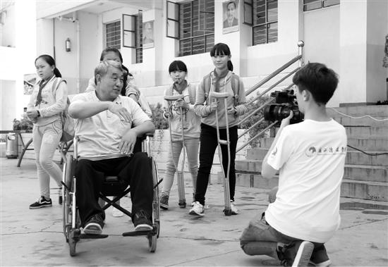 通過拍攝實(shí)踐隊(duì)員們看到了李本聰上課時(shí)的認(rèn)真和艱難,都被深深地感動(dòng)了。