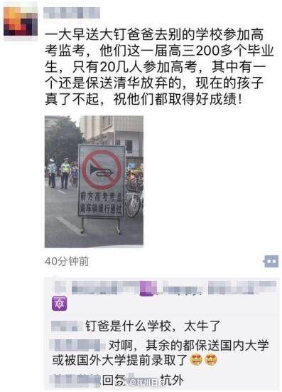 今天關(guān)于杭外有很多朋友圈傳言:一屆200多名畢業(yè)生只有20幾人參加高考,還有保送清華放棄的...經(jīng)記者核實(shí),這牛皮還真不是吹的。杭州外國(guó)語(yǔ)學(xué)校今年有209名畢業(yè)生,82人出國(guó),97人被保送,總共30人高考,其中還有3個(gè)參加中科大少年班的選拔的高二學(xué)生。不過(guò),放棄報(bào)送清華是假的。小編表示:學(xué)霸的世界真的不太懂...
